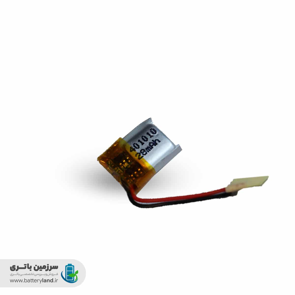 مشخصات باتری لیتیوم پلیمر، سایز 401010، 28 میلیآمپر، 3.7 ولت، برند انرژی