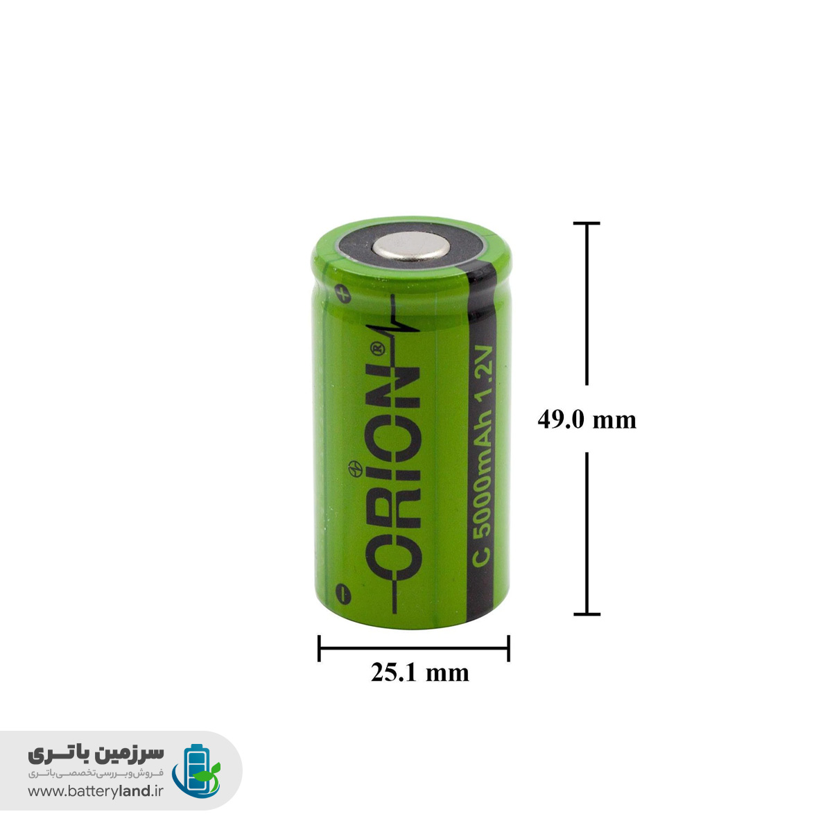 باتری شارژی نیکل متال هیدرید NiMH سایز متوسط C ولتاژ ۱.۲ ظرفیت 5000 میلیآمپر برند اوریون Orion